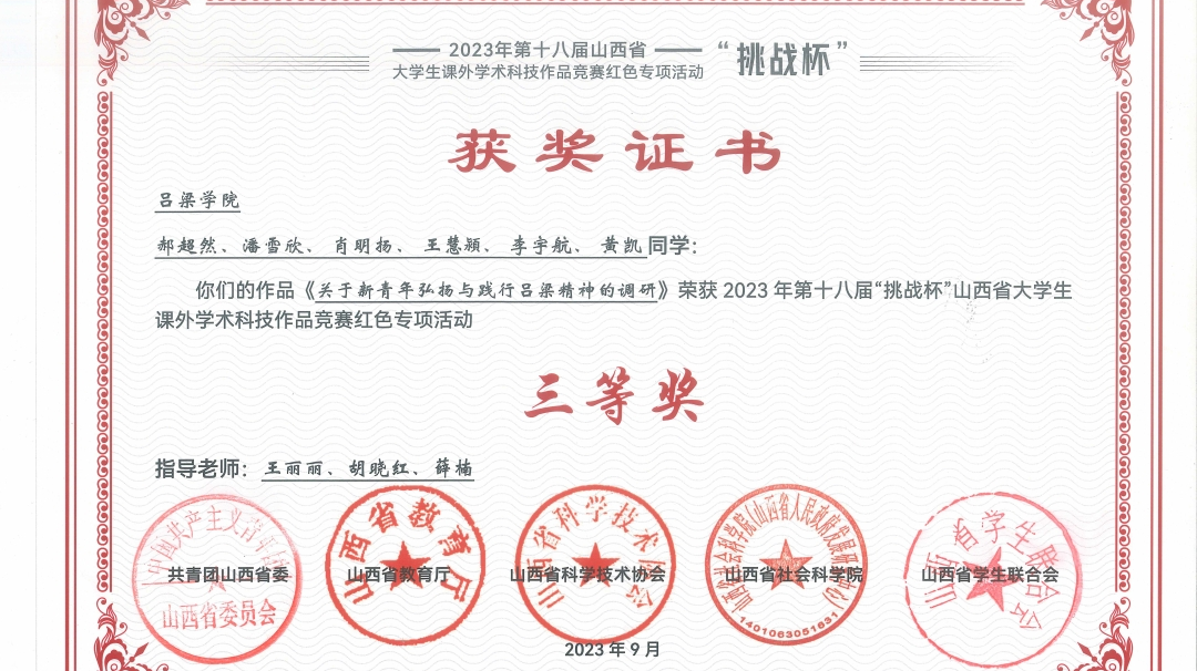 2023年09月获 吕梁学院第九届互联网+校级金奖;